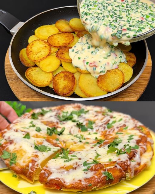 Découvrez la nostalgie et la saveur de la cuisine de grand-mère avec cette délicieuse recette de pommes de terre au four. Transmis de génération en génération, ce plat est la quintessence de la nourriture réconfortante : un complément parfait à votre table.Avec des pommes de terre croustillantes, des œufs crémeux, des tomates cerises piquantes et du fromage mozzarella gluant, c’est une symphonie de saveurs qui vous ramènera à des temps plus simples et réchauffera votre cœur à chaque bouchée.