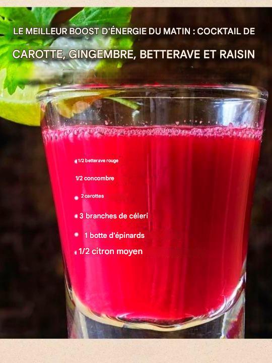 Grâce au Cocktail Carotte-Gingembre-Betterave-Raisin, vous apporterez à votre corps beaucoup d’énergie, favoriserez la digestion, renforcerez votre immunité et vous vous sentirez tout simplement mieux dès la première gorgée !