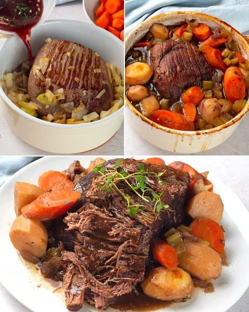 Rien de tel qu’un rôti fait maison pour vous réchauffer de l’intérieur. Ce plat sain est composé de rôti de paleron cuit jusqu’à une tendreté parfaite dans un mélange divin de bouillon , d’herbes fraîches et de légumes aromatiques comme l’oignon, la carotte, le céleri et l’ail.