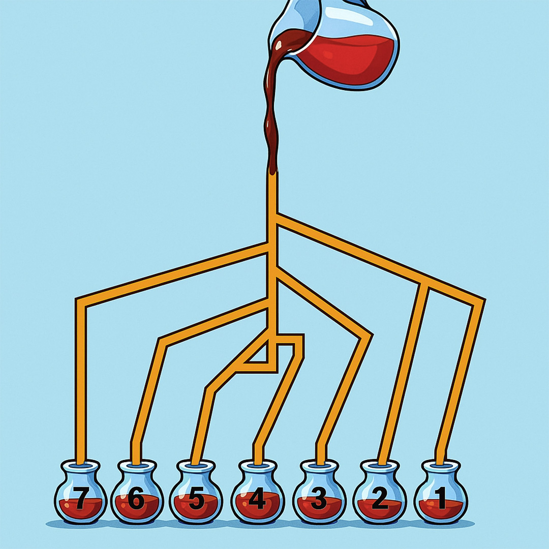 Imaginez : un robinet laisse couler de l’eau dans un enchevêtrement de tuyaux qui mènent à sept verres. L’objectif : identifier lequel sera rempli en premier.